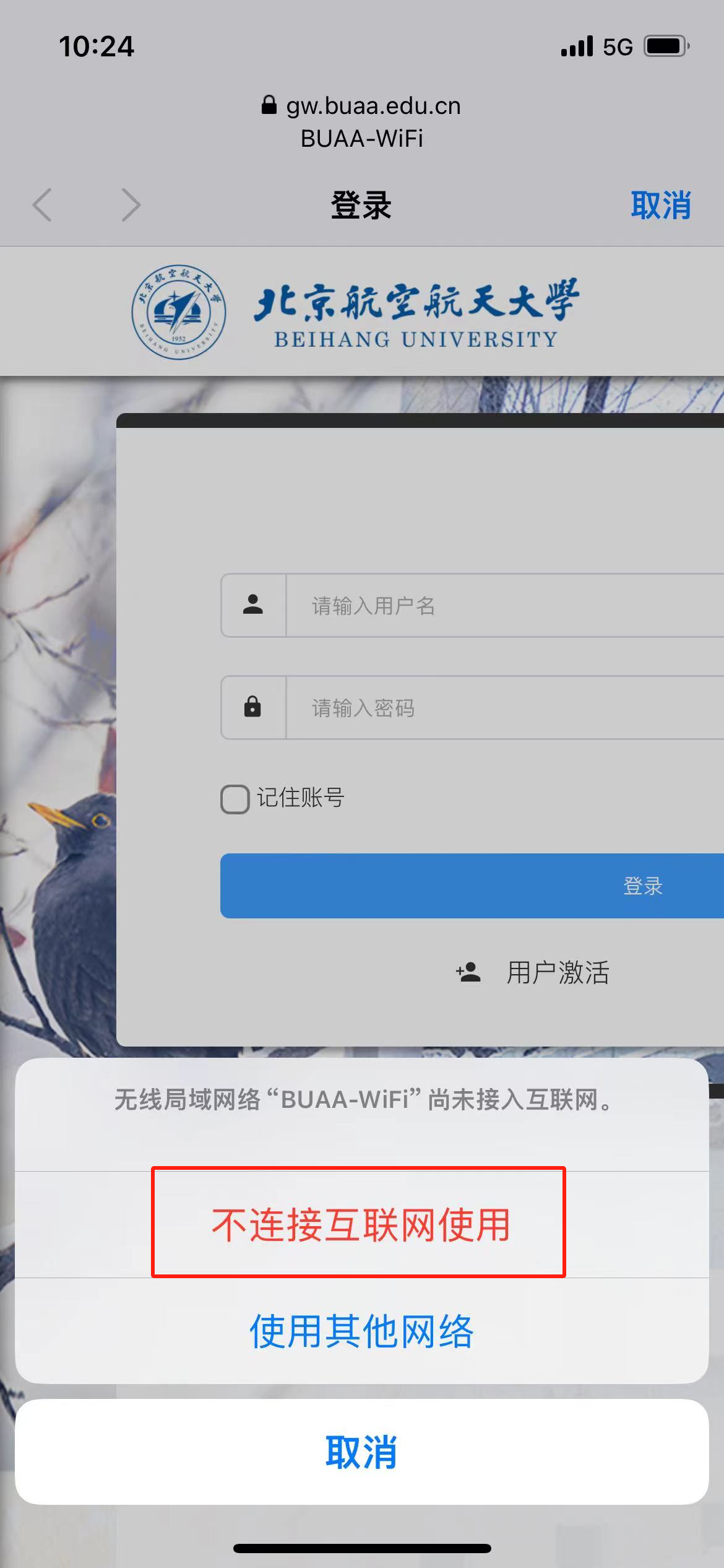 1、连接Buaa-Wifi,弹出认证登录界面,点击右上角取消;