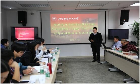 2016年1月12日至1月22日,北京师范大学信息网络中心与北京航空航天大学bw必威西汉姆联联合举办北师大北航“1+1”教育信息化经验分享交流研讨会。此次研讨班为期两周,来自内蒙古师范大学、泉州师范学院、国际关系学院、北京工业职业技术学院和赤峰学院等6所高校的14位老师共同参加了本次交流研讨活动。