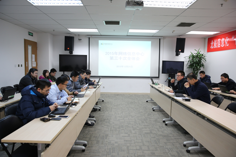 会上,战略综合科科长杨秀梅介绍了2015年工作总结汇编情况,通过梳理中心全体员工的总结材料梳理了年度重点工作完成情况和创新工作成果,并提议个人总结与年初计划做对比,与岗位职责做对比,突出工作亮点,用具体数字说明。项目部部长霍建同介绍2016年工作规划编写情况,并传达学校党政办公室具体要求,即制订2016年工作月历,面向全校公开重要工作时间点。应用发展科科长许兴介绍北航“为我点赞”和“call center”服务应用推广情况,并汇报在综合服务大厅全面推广使用“为我点赞”APP的规划。基础建设科科长周林志对国家实验室机房前期建设情况和家属区网络整改情况进行了汇报。办公室汇报了近期工作情况。