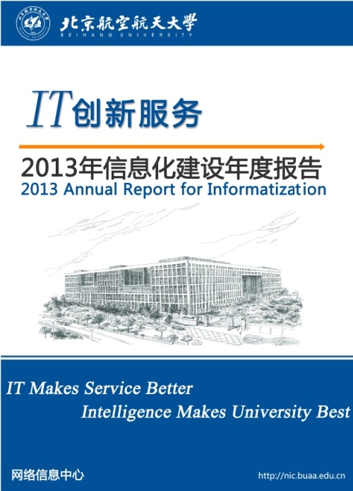 《年度报告》总结了2013年度北航信息化建设的重要举措。其中IT治理专项中共发布了《信息化推进卓越服务行动计划》和《北京航空航天大学信息化项目管理办法》两份文件,修订了《北京航空航天大学信息化建设管理暂行办法》、《北京航空航天大学门户网站建设维护管理办法》、《北京航空航天大学数据共享管理办法》和《北京航空航天大学管理信息标准》;在全校范围内多次组织面向各层干部和工作人员的流程优化专题培训,形成线上线下服务协同的创新服务模式;微系列活动中举办了15期微培训,16次微调研,以及微沙龙、微开放日和微宣传等多项信息化活动;并在全校范围内大面积展开信息化人才队伍的建设。