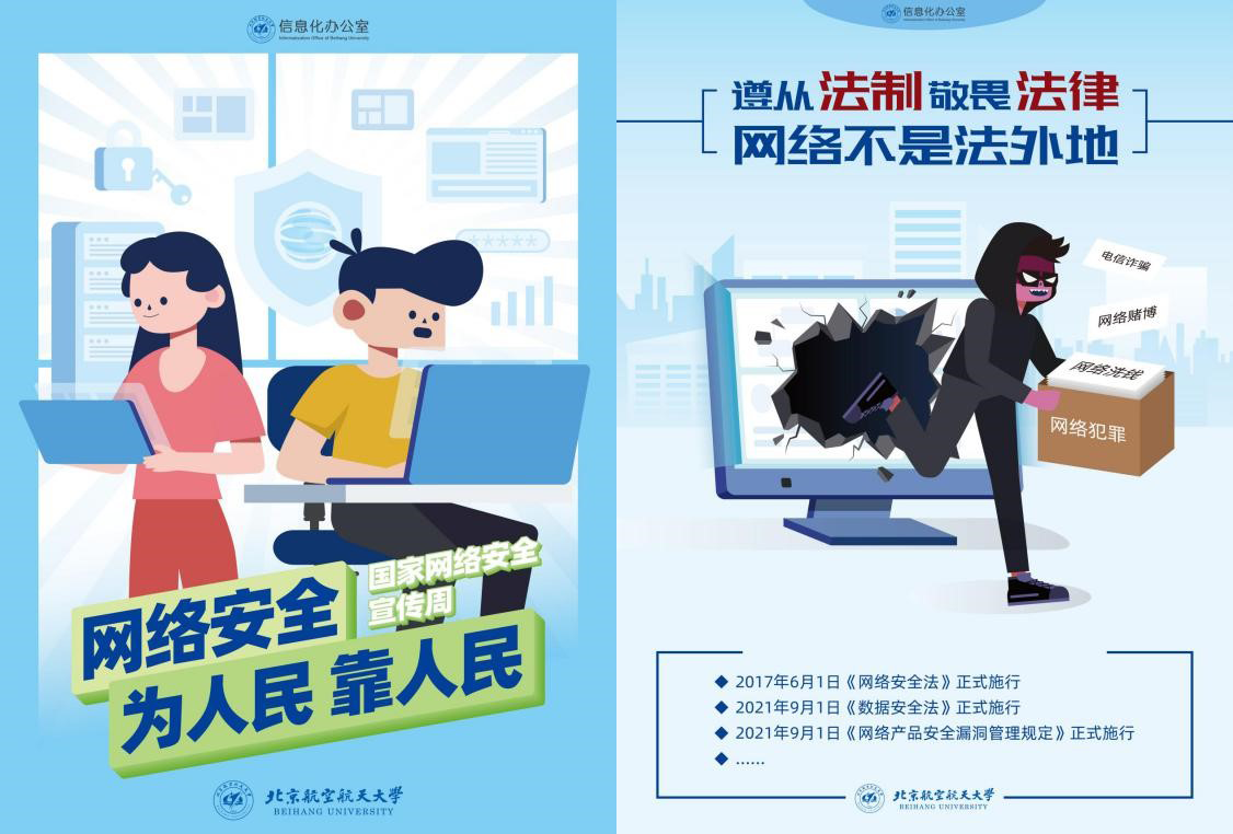 为进一步加强网络安全工作,严格落实《中华人民共和国网络安全法》的相关规定,切实做好我校网络安全保障,进一步提升全校师生的网络安全意识和安全防护技能,强化网络阵地建设,创造安全、稳定、健康、和谐的校园学习和生活环境,不断提高师生的安全意识,增强保护隐私信息以及辨别相关信息真假的能力,今年9月5日至9月11日,北航将举行线上和线下结合的网络安全周宣传教育活动。