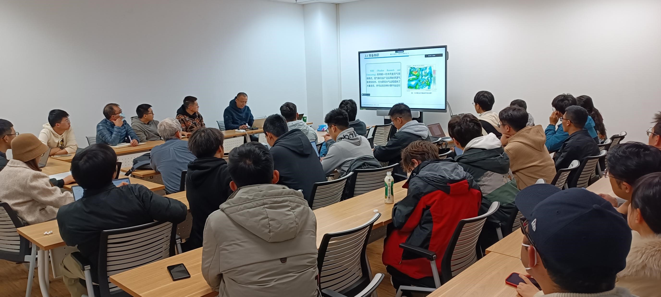 首先由高性能计算中心霍志胜、孙佩源两位老师对平台进行整体介绍,内容涵盖平台的体系架构、软件环境、作业提交等,并在其中引入了高性能计算领域典型案例——气象研究与预报(WRF),帮助大家更好理解平台功能。过程中,霍志胜老师讲解了WRF的安装过程,为参会师生讲述了WRF软件安装配置的详细流程,通过实例介绍了我校高算平台的使用流程。孙佩源老师详实介绍了平台访问、资源申请、结果分析及注意事项等方面的内容。