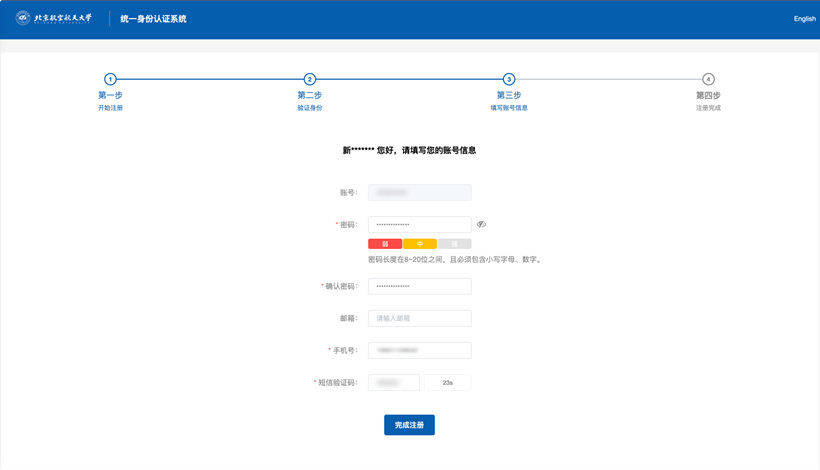 第六步,人脸识别成功后,网页端会自动跳转至账号信息填写页面,填写完成后,即可完成注册。