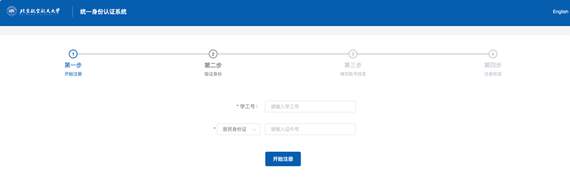 第三步,在“统一身份认证注册页面”输入自己的学号和证件号。